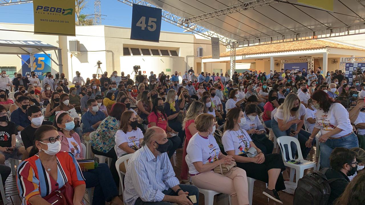 Olhando para o Governador Reinaldo Azambuja “Eu sei que as eleições de 2022 serão as mais duras e as mais sujas que esse país já viu, por que eu conheço os métodos do PT, vocês também conhecem, e todos nós conhecemos os métodos dos negacionistas, dos extremistas, dos loucos, que ameaçam quem pensa diferente, que confrontam quem os nega e quem quer distância deles” e finalizou “Hoje nós começamos essa corrida, a corrida do PSDB para vencermos as eleições, chega, nem Lula, nem Bolsonaro, nem horror nem terror, nós vamos do amor, o amor pela vida, o amor pelas mulheres, o amor pela diversidade, o amor pela saúde, o amor pela vacina. É assim paz e esperança, mais tenacidade e força. Não será uma campanha fácil, não é uma campanha para bonzinhos é uma campanha para quem tem espírito de luta, pra lutar com vocês e para vocês”.