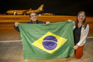 O avião KC-30 da Força Aérea Brasileira (FAB), com 211 passageiros, decolou de Tel Aviv às 14h12 (horário de Brasília) de ontem (10) e fez voo de cerca de 14 horas direto para a capital federal.