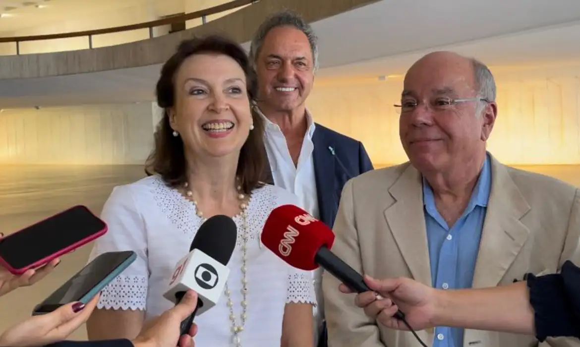 O ministro de Relações Exteriores, Mauro Vieira, avaliou em coletiva de imprensa neste domingo (26), como “produtiva” a reunião com a deputada argentina eleita Diana Mondino, chanceler designada pelo presidente eleito Javier Milei. Vieira destacou que, a despeito de possíveis falas críticas ao Mercosul, o que vale são as manifestações formais e que há desejo dos dois países em fazer o bloco avançar.
